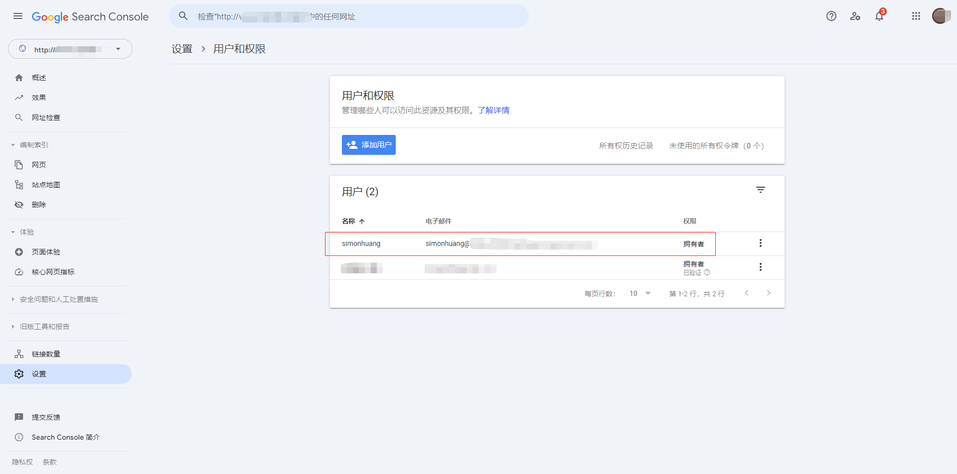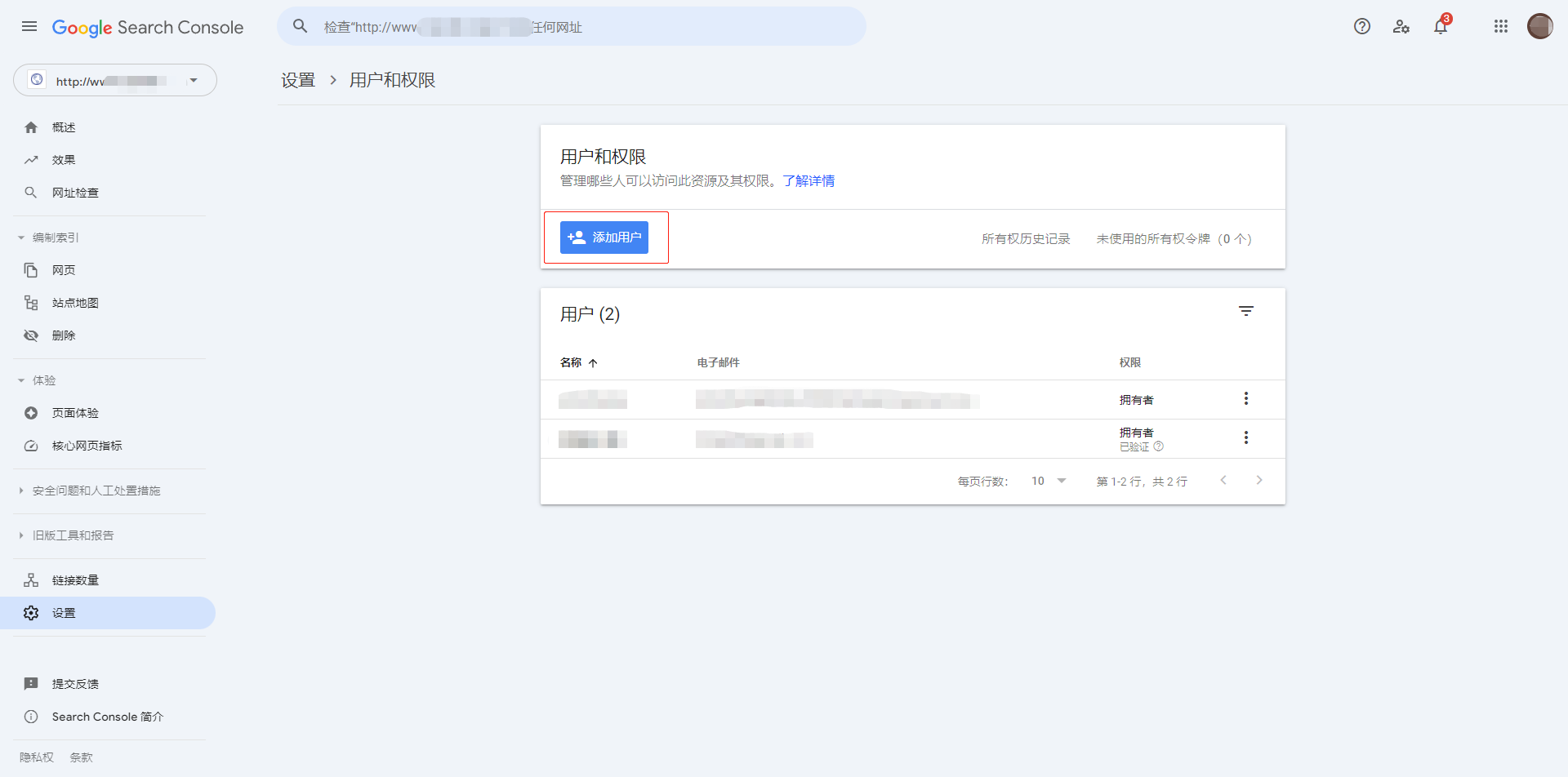 16、点击添加按钮,将刚刚在谷歌云平台创建的服务账号添加到站长平台中