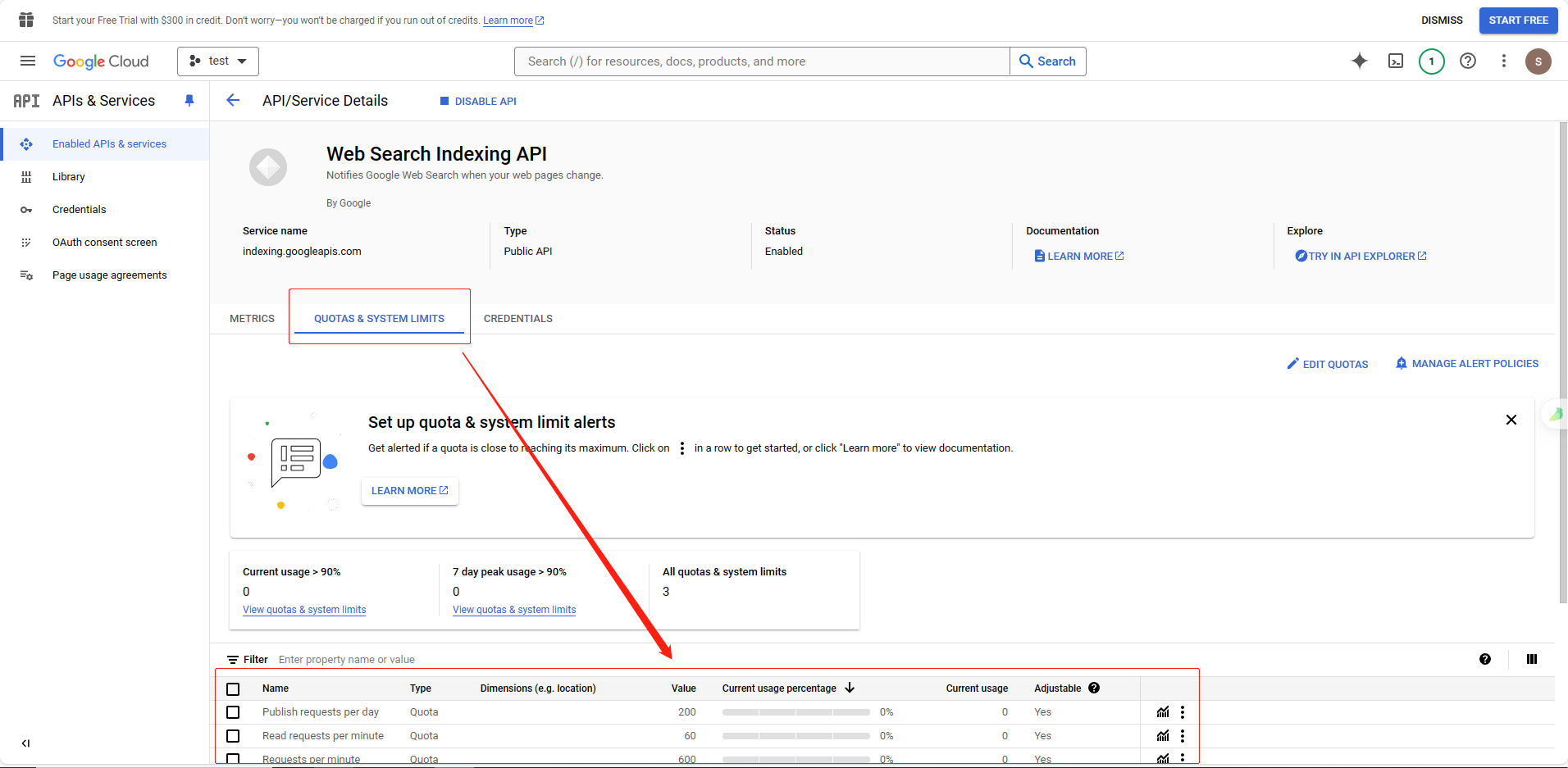 由于谷歌平台限制,每个账号可推送的链接有限制,这个限制被称为配额,用户可自行前往谷歌云平台查看账号具体配额
