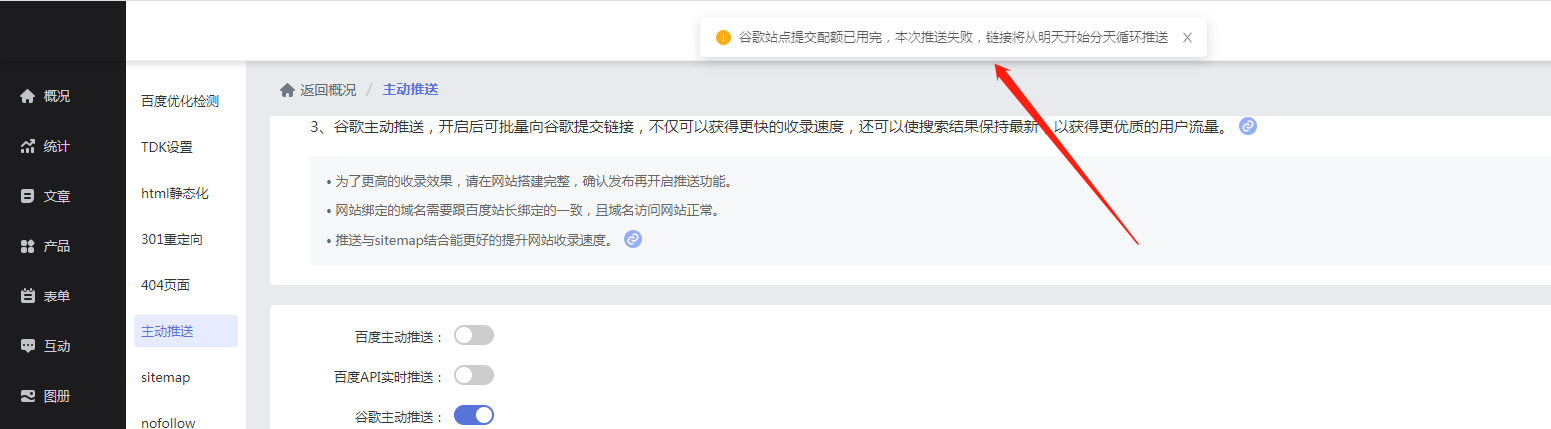 为了能够推送更多链接,我们建议您尽量不要改小这里的配额数量,不然可能导致推送失败