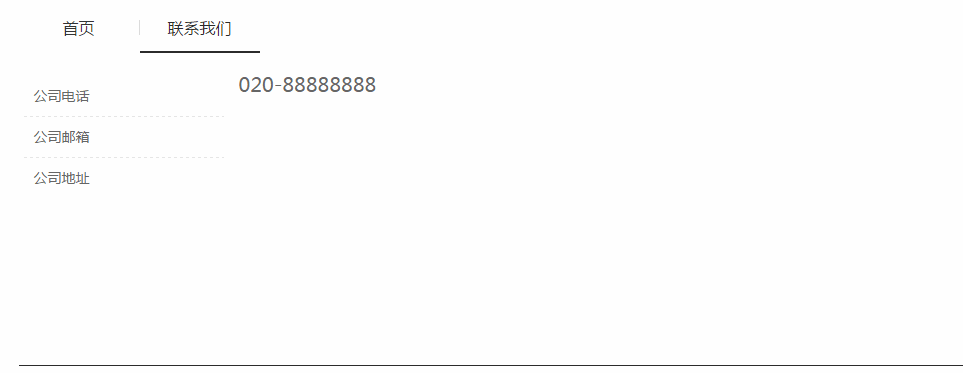 至此栏目导航已完成设计,可以点击左侧导航切换不同页面设计右侧内容
