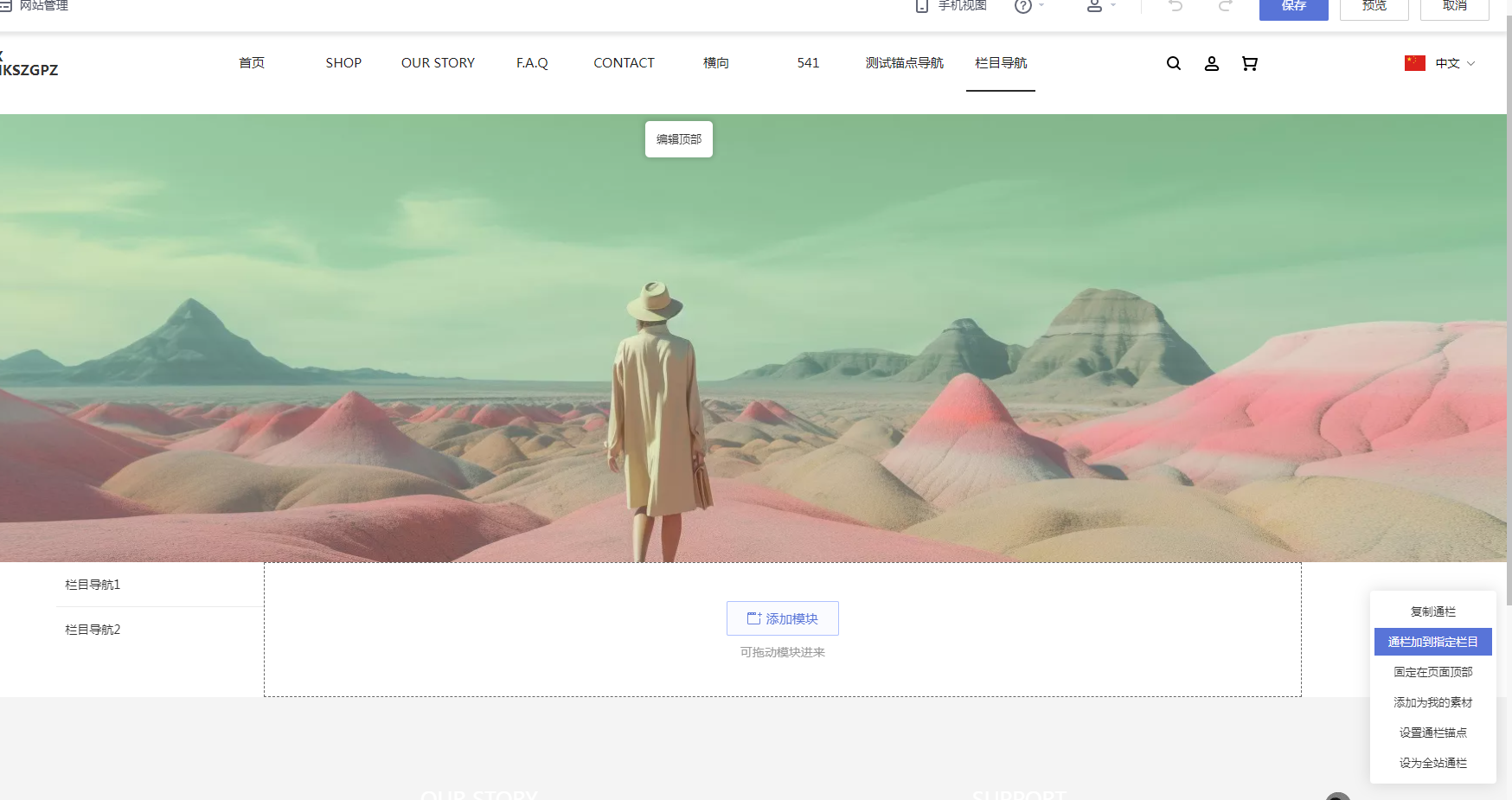 右键点击该通栏,选添加到其他通栏,并选择作为导航的二级栏目